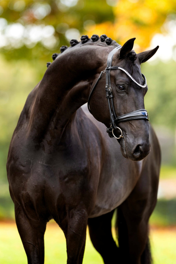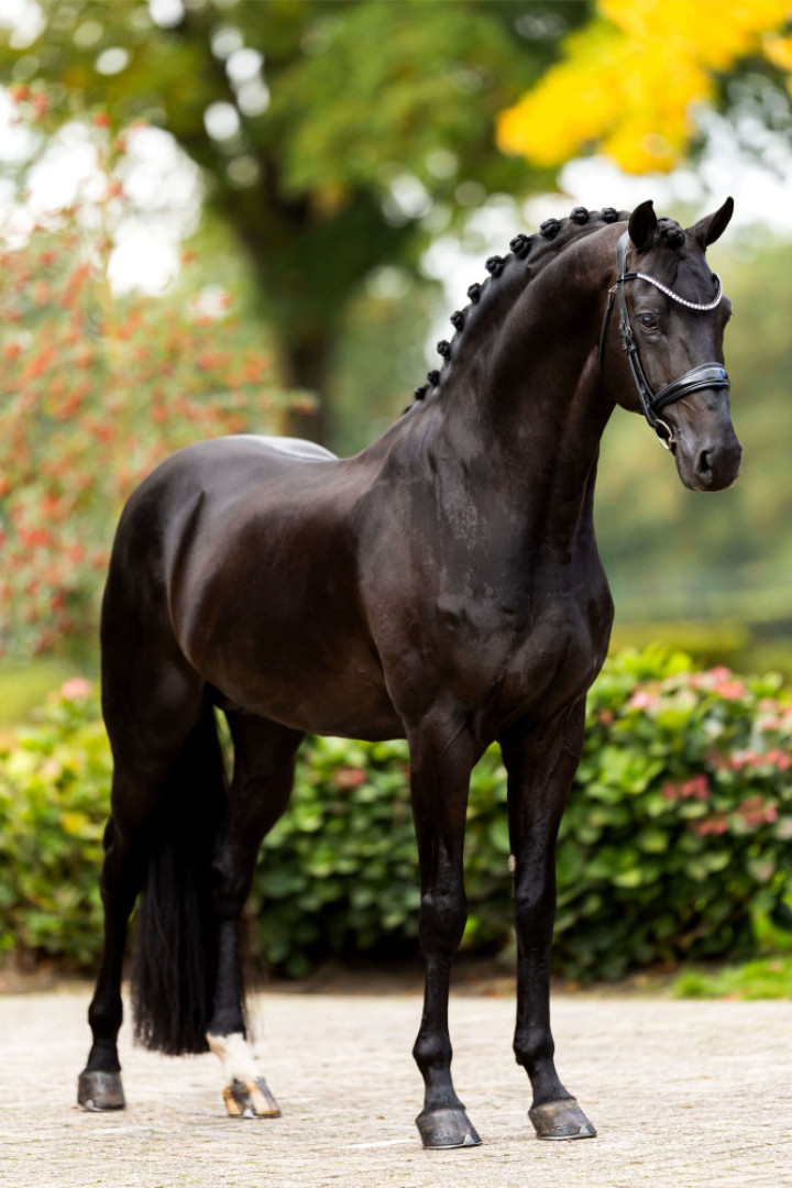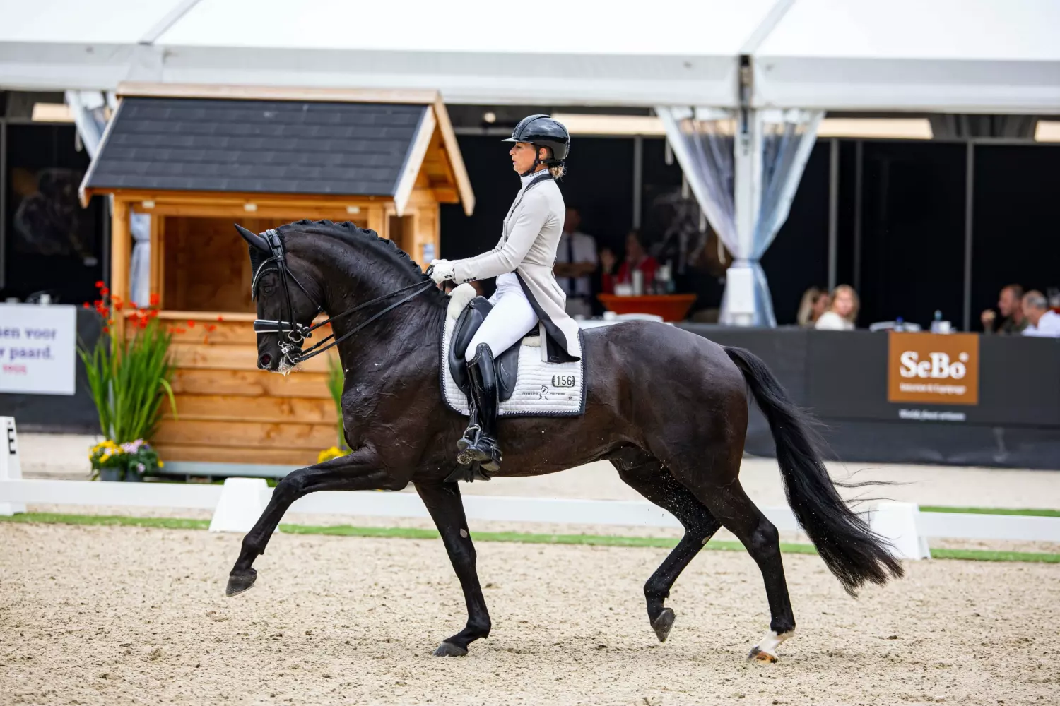 Mauro Turfhorst N.O.P.T., een zwarte parel en fokproduct van Jan Greve uit Haaksbergen, mag met recht als een toptalent worden bestempeld. Al jong liet hij zijn potentie zien: als reservekampioen bij het KWPN-verrichtingsonderzoek scoorde hij 84 punten en kreeg een lovend rapport. Hij was finalist bij het WK voor Jonge Dressuurpaarden bij de vijf-, zes- en zevenjarigen, en in 2024 behaalde hij onder Dinja van Liere zilver op het NK Dressuur ZZ-Zwaar en een vierde plaats in de finale van het WK 7-jarigen. Dit succes zette zich moeiteloos voort in de Lichte Tour.
