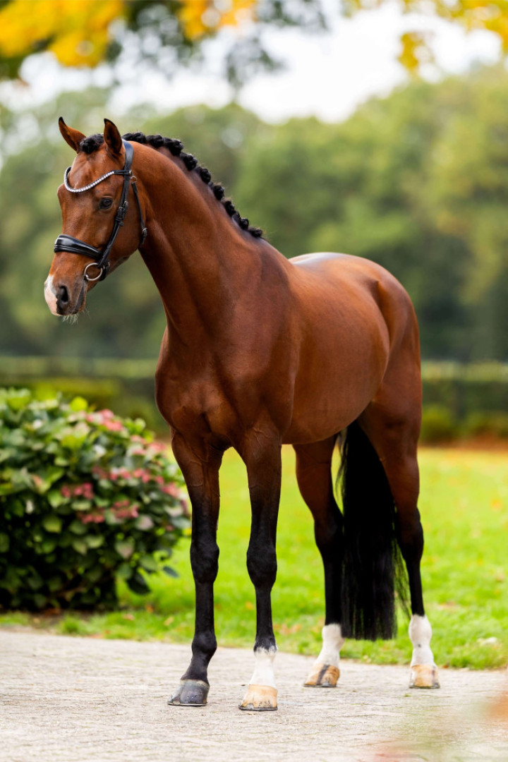 Vino Tinto is één van de talentvolste zonen van Viva Gold OLD en valt direct op door zijn prachtige exterieur, zijn galop en het totaalbeeld van zijn bewegingen. Zijn draf kenmerkt zich door een groot voorbeen en een sterk ondertredend achterbeen. Zijn stap is erg ruim, zuiver en met veel souplesse, en hij toont een enorm talent voor verzameling. Vino Tinto belooft een veelbelovend sportpaard te worden voor de toekomst.